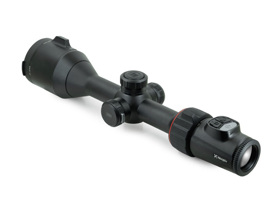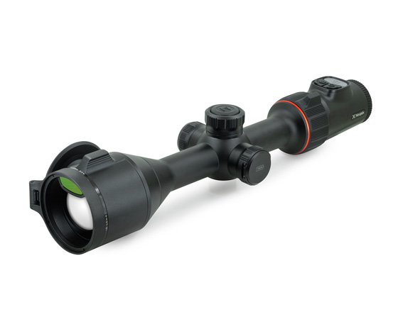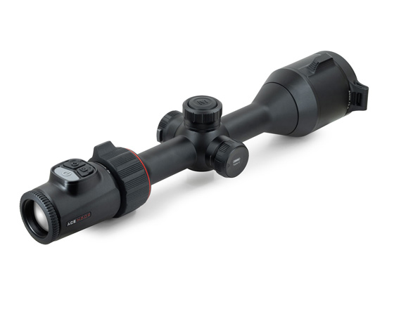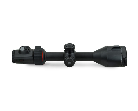The ACE is built around the idea of combining leading user-requested features in a streamlined optic that balances advanced capability with ease-of-use in the field. Designed to feel like a traditional day optic, the ACE is compatible with bolt action or semi-automatic rifles using standard 30 mm mounts and rings. The combination of an internal USB-C charging battery and a removable 18650 style rechargeable battery allows users to hot-swap batteries in the field to run indefinitely. A 1-3x ocular magnifier provides optical magnification of the 2560×2560 round AMOLED display inside the eyepiece. The Vision+ system pairs this high-resolution display with a 15 mK NETD sensor for an incredibly detailed and precise image. The 1,300-yard capable laser rangefinder on the ACE is integrated directly into the 50 mm germanium objective lens. In addition to streamlining the body design and reducing bulk, this allows for improved horizontal alignment of the infrared laser with the viewing system.