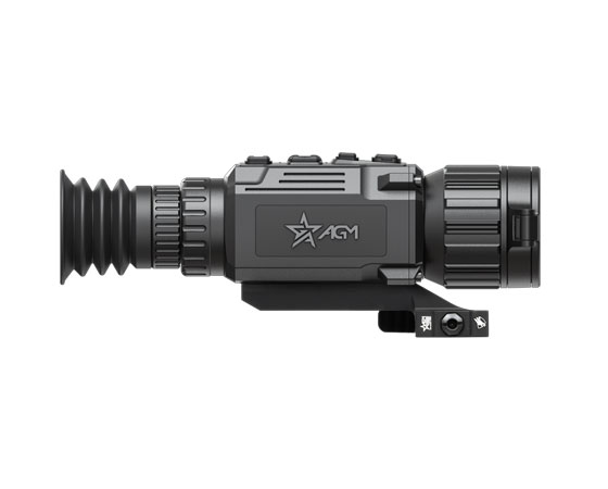 Although it seems like just yesterday the celebrated AGM Rattler thermal riflescope family got upgraded with the introduction of the RattlerV2’s, the NEW RattlerV3 LRF testifies to the fact that evolution never stops. The RattlerV3 LRF 35-384 pairs a 35 mm Germanium lens with an industry-leading sub-15mK thermal sensor and a new 1920×1080 high resolution display, which combines to produce the best 384 resolution thermal image. These technical parameters work together to produce a detection range 1.5 miles. The RattlerV3 LRF also brings the once inconceivable new in-lens LRF technology to the compact Rattler series. A fully integrated 1,000m laser rangefinder is paired with a new on-board ballistic calculator. The RattlerV3 LRF 35-384 has a base magnification of 3.5X, making it an optimal option for predator hunters in wide-open terrain, which entices longer range engagements. Its also the first Rattler ever to come with a shutterless NUC and AGM’s powerful new Image Boost 2.0 imaging algorithm. Large sturdy buttons were designed to aid gloved fingers in cold winter weather, while the removable rechargeable NE-4400 battery offers one of the most robust and easy to install battery systems on the market. The firmware package allows users an amazing level of customization: on-board pitch scale, 10 brightness and contrast settings, warm & cold viewing modes, multiple color palettes, picture in picture, ballistic calculation, on-board video recording with sound, WiFi hotspot, multiple zeroing profiles, shot activated video recording, defective pixel repair, hotspot locator and multiple laser range finding modes. Also included is an American-made ADM mounting system.